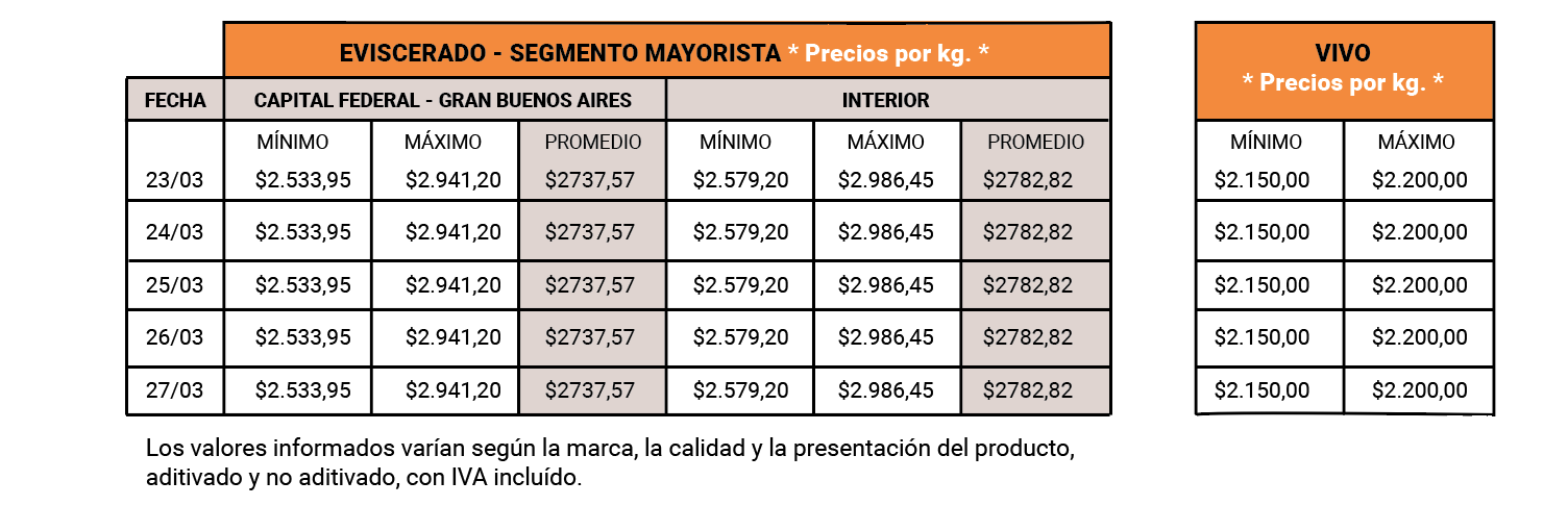El mercado del pollo parrillero eviscerado finalizó esta corta y atípica semana de marzo con una actitud activa. Esto incidió positivamente en la formación de los precios, lo cual, es muy importante, porque de algún modo se logró frenar la baja en las cotizaciones.