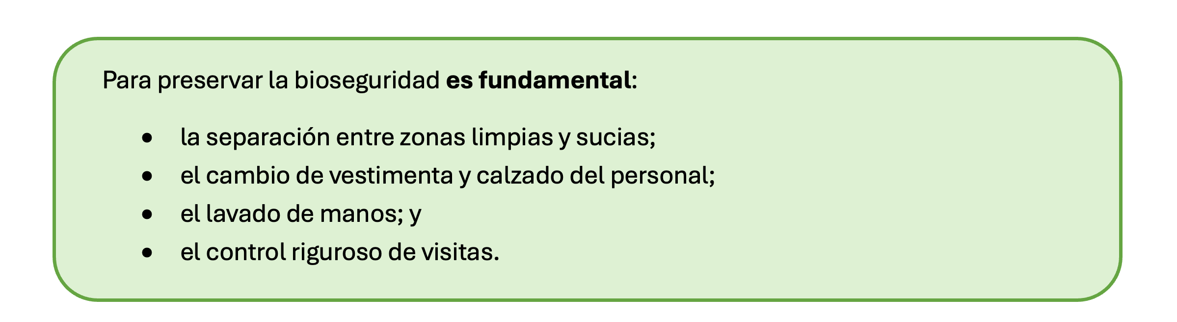 La bioseguridad requiere un control estricto de accesos mediante perímetros cerrados, desinfección obligatoria de vehículos y restricción de ingresos.