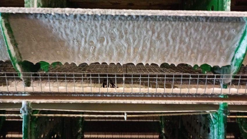 2. Espumar las jaulas, comederos y bebederos con algún detergente adecuado para este uso aplicando el producto de arriba abajo, permitiendo que la espuma penetre en su totalidad. Garantizar cobertura homogénea en todas las superficies.